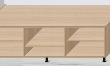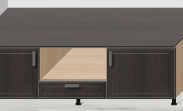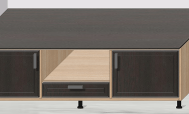 Bir alt modülü evye modülüne çevirmek için sadece tek bir tıklama yeterli. Modül önceden belirlediğiniz evye özelliklerine anında geçiş yapacaktır. Örnek olarak; arkalığı kaldırıp, alt tablayı geri çekip, arkasına klapa atayacaktır. Ayrıca üst klapayı dikey olarak bağlayabilir yada üste klapa da koyabilirsiniz.
