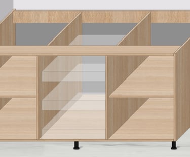 Özel Modül seçeneği ile oluşturacağınız alt dolapları, dilerseniz 2 yada 3 kısımdan oluşturarak aynı modül içinde birden fazla kısım ile dikmelerden kar edebilirsiniz.