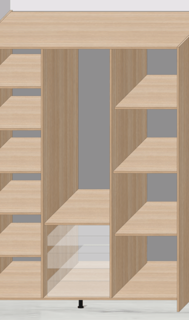 İstediğiniz ölçüde ve 5 bölmeye kadar Boy dolap oluşturabilirsiniz. Bölmelere ayrı ayrı kapak açılma modeli seçebilirsiniz. İster Yan açılır kapak (Tek, Çift), ister dik açılır kapak (Düşer, Kalkar), ister çekmece, ister kapaksız alan.