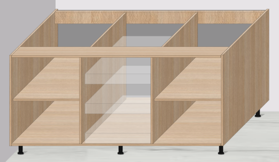 Üst modüllerinizde dilerseniz dikmeleri kerterek dilerseniz dikmeler arasına gola kulp uygulayabilirsiniz. Kesapp gola kulp uygulaması için size tüm kertme yerlerini en doğru şekilde hesaplayarak kesim listesinde gösterir.